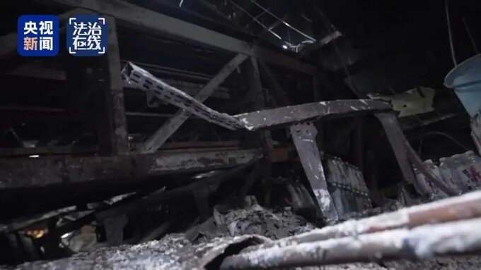 国家消防救援局消防监督司一级指挥长 王天瑞:这起火灾,一个深刻的教训是负一楼超市顶棚违规使用可燃易燃的彩钢板装修。这种彩钢板,中间加了聚苯乙烯的材料,燃烧速度快。