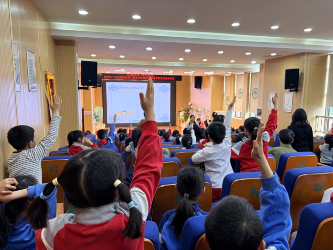 互动环节,孩子们纷纷举手,抢答声此起彼伏。