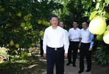 11月7日至8日,中共中央总书记、国家主席、中央军委主席习近平在广东考察。这是7日下午,习近平在梅州市梅县区雁洋镇南福金柚种植基地考察。新华社发(肖翊 摄)