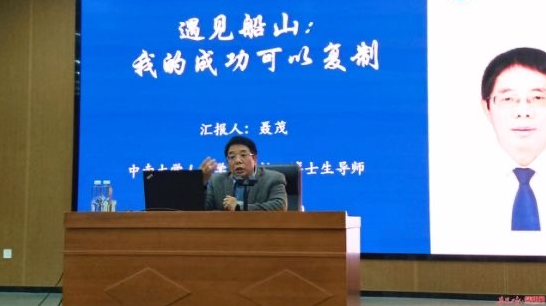 “我的信仰就是天道酬勤,我的靠山就是笨鸟先飞,我的后台就是永不放弃!”讲座伊始,聂茂谈起了自己从农家子弟到大学教授的励志人生,分享了少睡就是多活、化忍受为享受等从船山精神中汲取而来的“成功秘笈”,鼓励青年学生敢于尝试打破常规、走出舒适区、寻找自己的高山,来复制他的成功之路。
