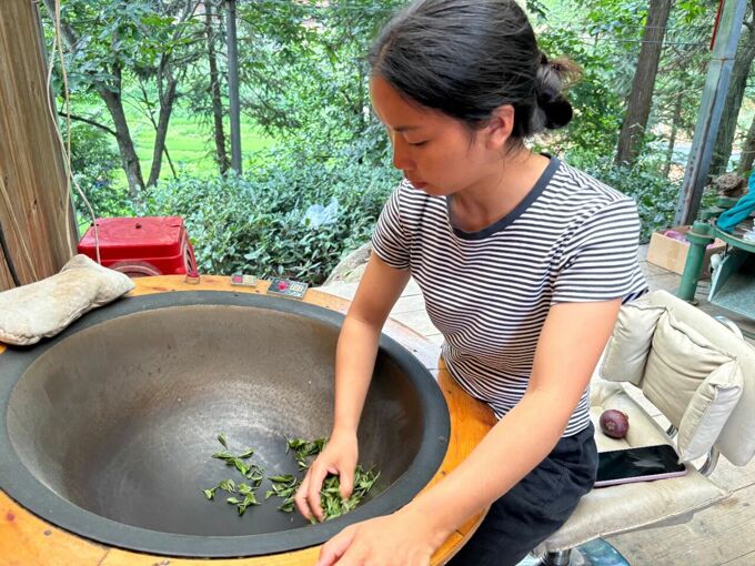 刘飞燕学习炒茶技艺。