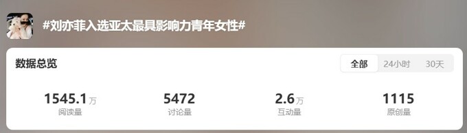 11月5日,2025年亚太地区最具影响力青年女性榜单正式发布,刘亦菲、迪丽热巴、贾玲等中国女演员荣誉登榜。榜单一经发布就迅速冲上热搜。