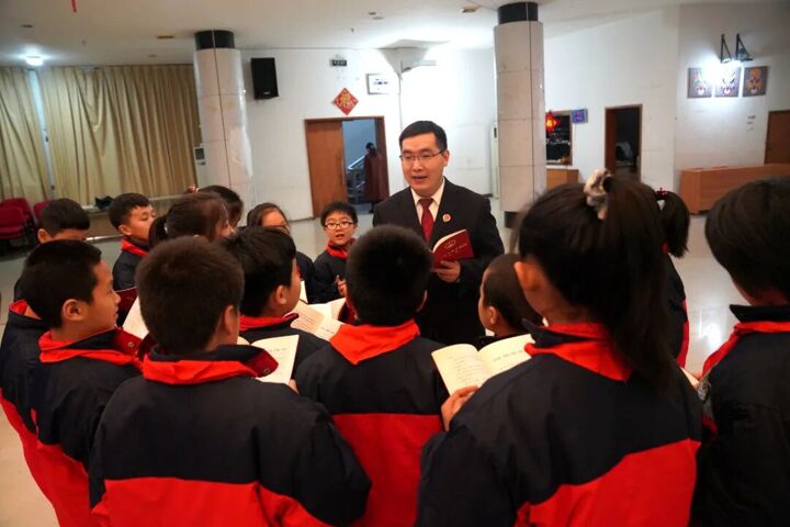 天元区人民检察院检察官祝晓明在给孩子们开展法律课堂。