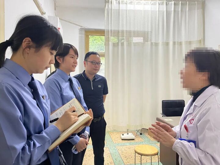 余思思(左二)和同事在向报告线索的医生了解情况。