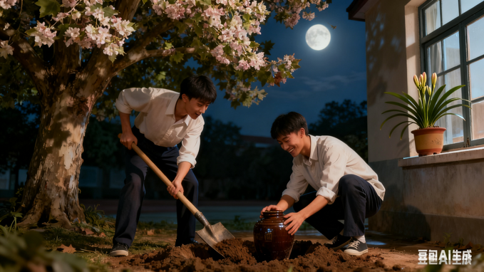 “等咱们培养出第一百个中学高级教师,就启封这坛酒!”年轻的老李在桐树下挥着铁锹,月光把他的影子拉得好长。