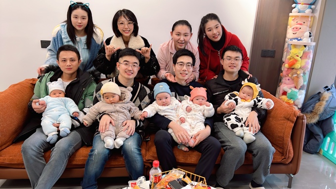 这场特别的“育儿合作”始于一次充满巧合的家庭分享。2021年,张先生和好兄弟文迪闲聊时,各自透露了妻子怀孕的消息——宝宝的预产期竟都同在8月。没过多久,他们同在长沙的大学同学阿韬、城哥也相继传来喜讯,他俩的妻子也怀孕了。孩子们相继出生,其中,四个宝宝(包含一对龙凤胎宝宝)集中在8月出生,还有一个在11月。