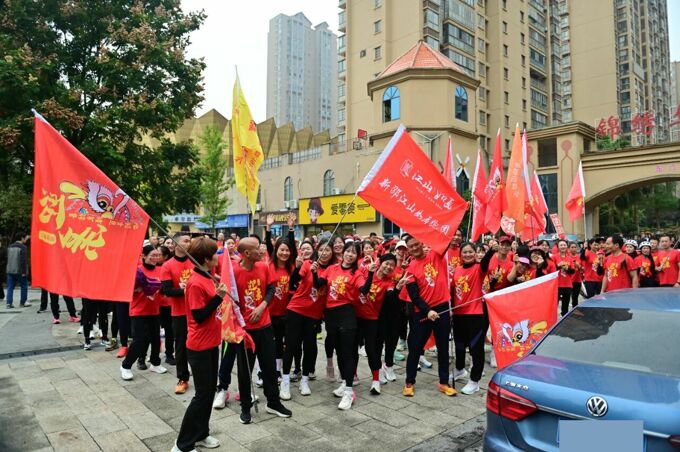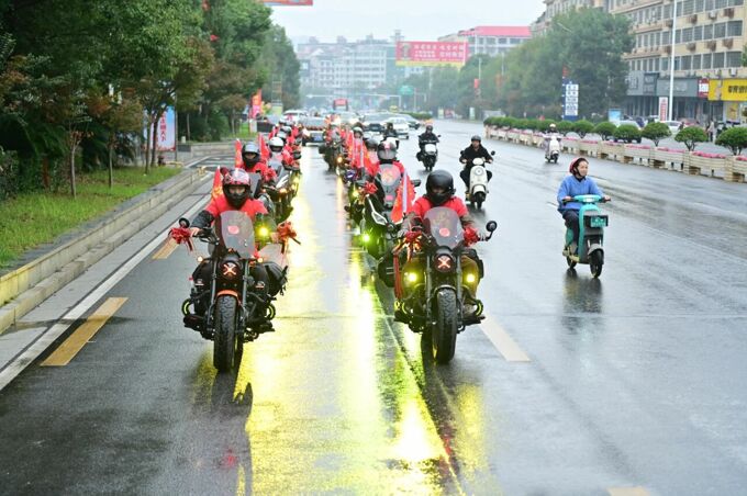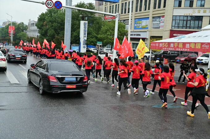 跑友们的热情更是超出预期。消息在跑圈传开后,不仅新邵11路跑团的成员全员响应,邵阳各地的跑友也纷纷报名,最终组成260人的迎亲跑团。有人提议:“光跑步不够热闹,加辆自行车队吧!”立刻有跑友开来自己的山地车;还有人说:“摩托车队开道更威风!”几位骑友主动请缨,组成护航队伍。